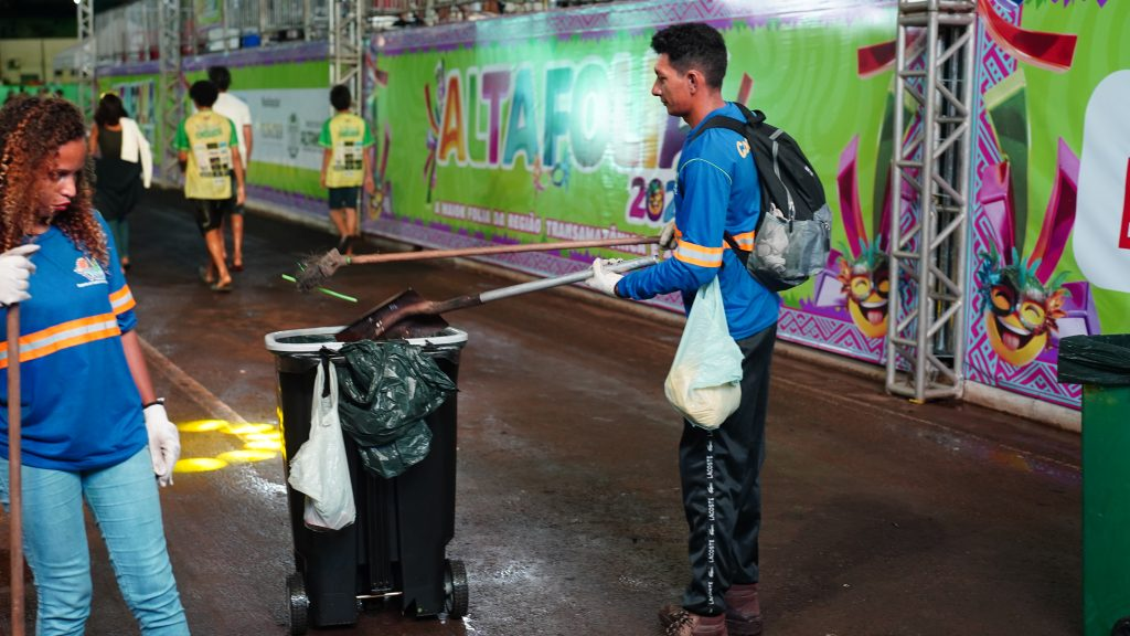 Todas as noites, oito servidores percorrem o corredor da folia recolhendo copos, latas e resíduos deixados para trás. O trabalho é acompanhado pela Secretaria Municipal de Obras, Viação e Infraestrutura (Semovi).