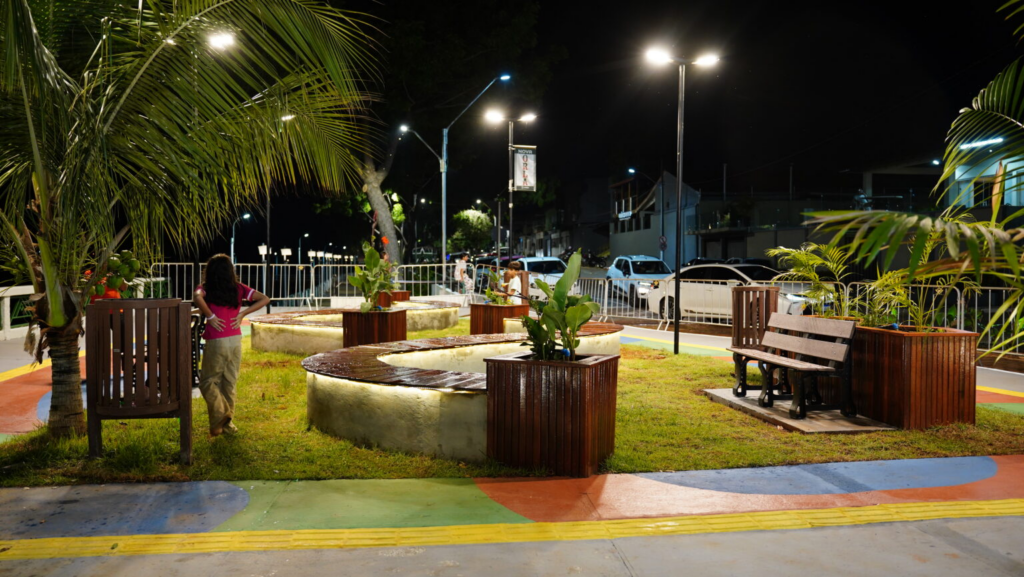 O projeto também priorizou a acessibilidade, com percursos adequados, piso tátil e áreas amplas, permitindo que pessoas com mobilidade reduzida utilizem o espaço com segurança e autonomia. Bancos, áreas de descanso e lixeiras foram instalados de forma estratégica, estimulando o uso familiar e social da Orla.